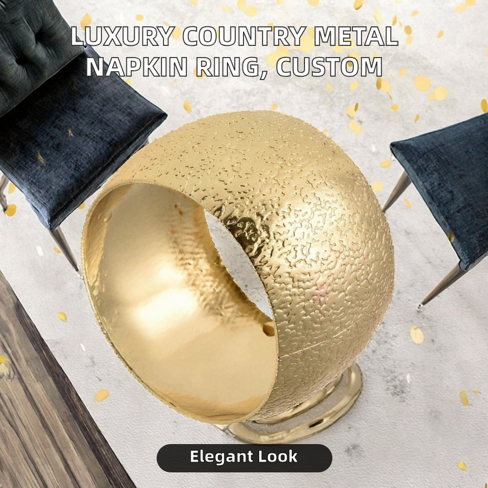 Anillos de Servilleta Metálicos de Lujo Estilo Rústico con Diseño de Resorte, Color Dorado Personalizable, para Fiestas, Decoración del Hogar, Impresión Personalizada