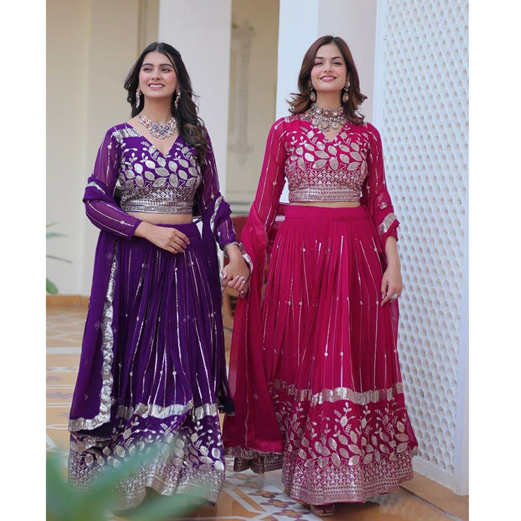 Secuencia de bordado de estilo de lujo, trabajo pesado, Faux Georgette, diseñador, boda, Lehenga Choli para mujeres de Rani y Begani Color