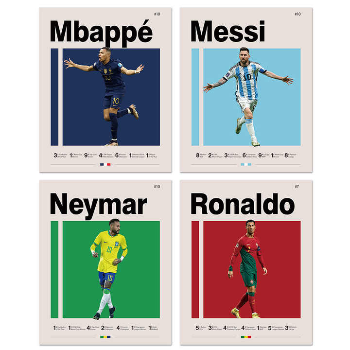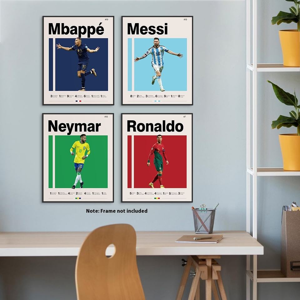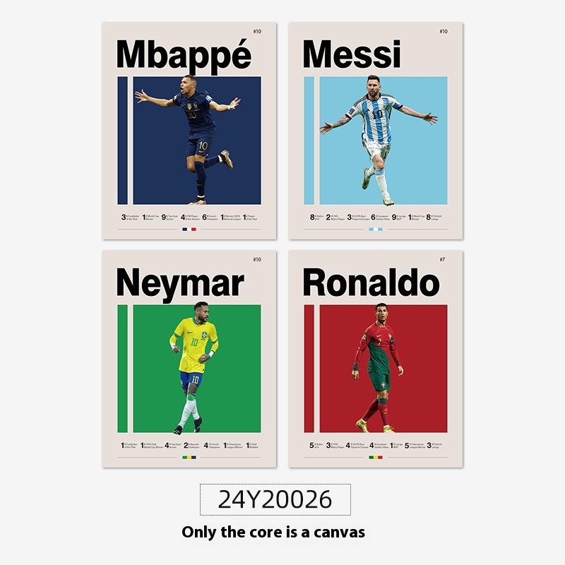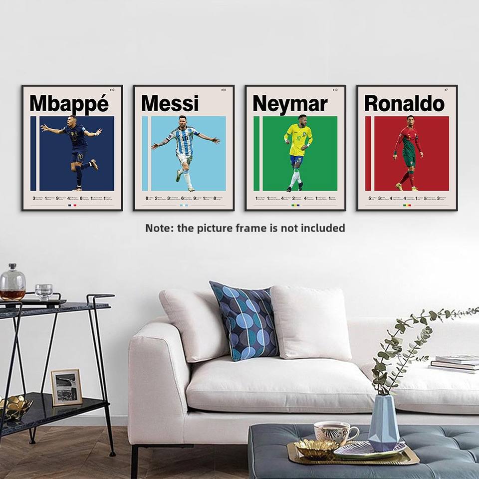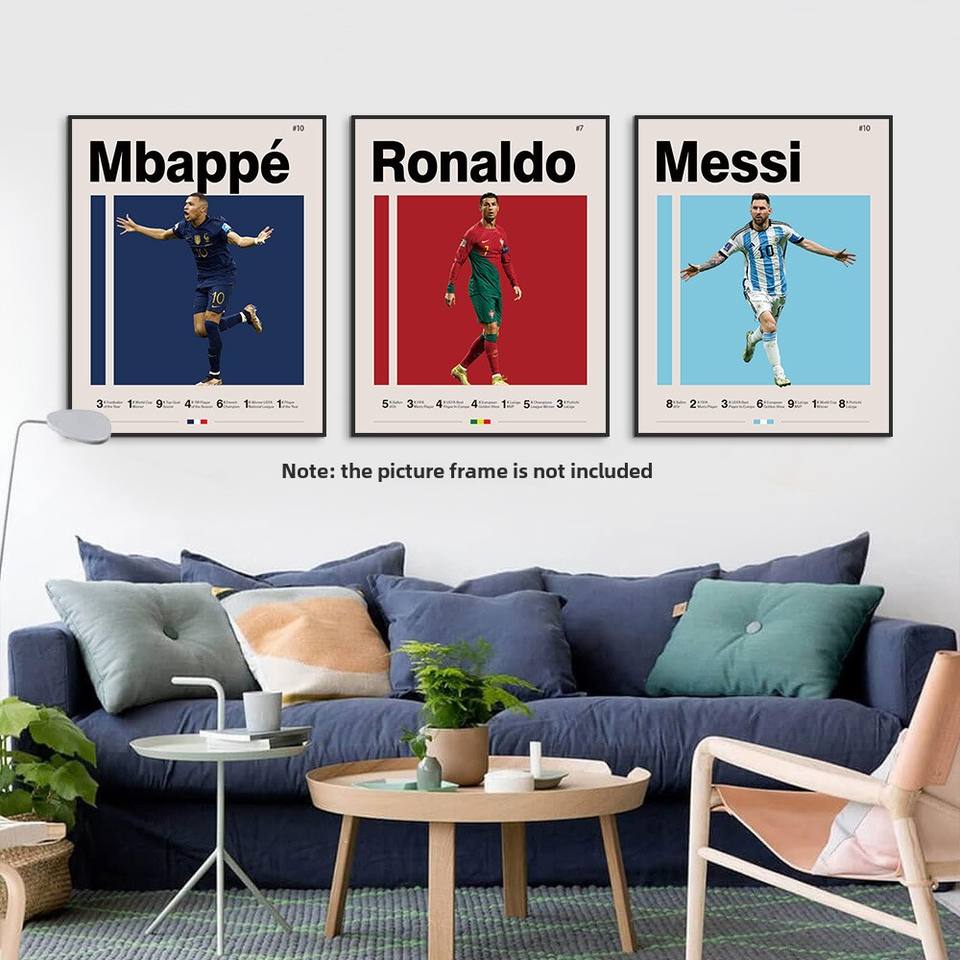 Póster de estrella de fútbol con estampado de inyección de tinta HD de estilo lujoso, decoración de dormitorio, lienzo colgante, retrato de Cristiano Ronaldo Messi mediano