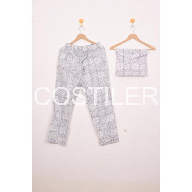 Conjunto de ropa de dormir de mujer con estampado de bloque de mano suave de estilo de lujo, pantalón y camisa de pijama de algodón suave transpirable con patrón Floral