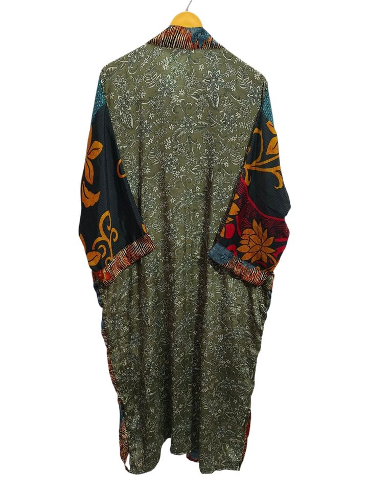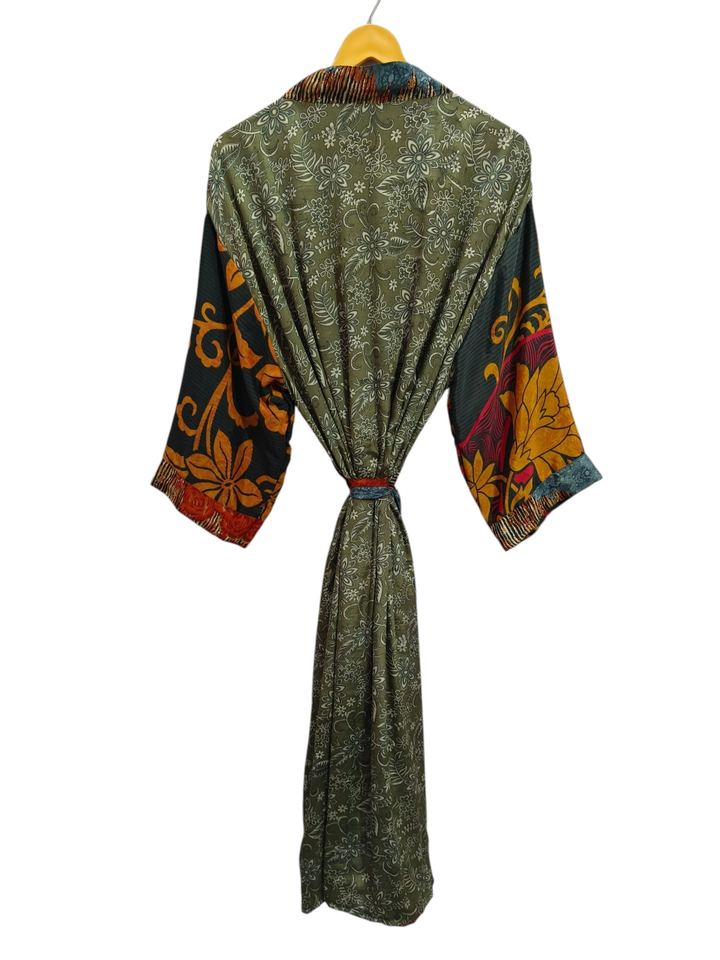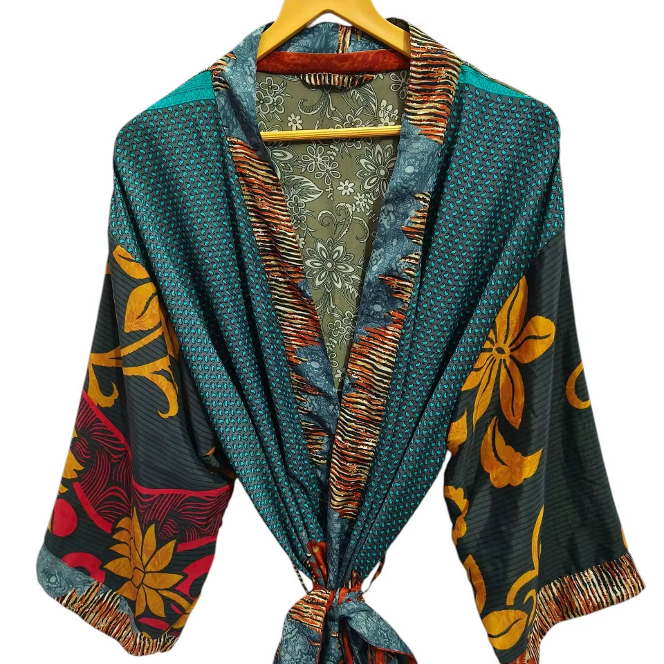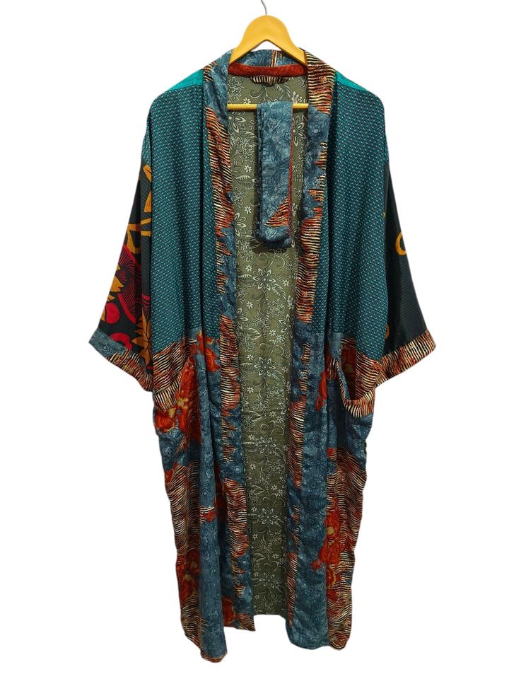 Kimono de verano de lujo para cubrir el bikini, bata larga de noche, Kimono Sari de seda reciclado vintage indio hecho a mano,