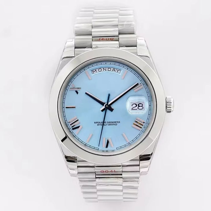 Reloj Mecánico de Lujo de Alta Calidad, Fábrica EWE, 40 mm, Resistente al Agua, Acero 904L, Movimiento 2836, 228236, Luminoso, Azul Hielo