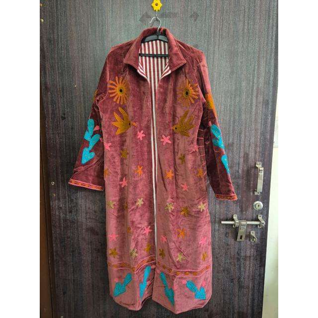 Chaqueta Larga de Terciopelo Suzani de Lujo, Acolchada, Transpirable, Tejida a Mano, Estilo Bohemio, con Cuello Alto y Bordado, para Mujer, Abrigo de Invierno