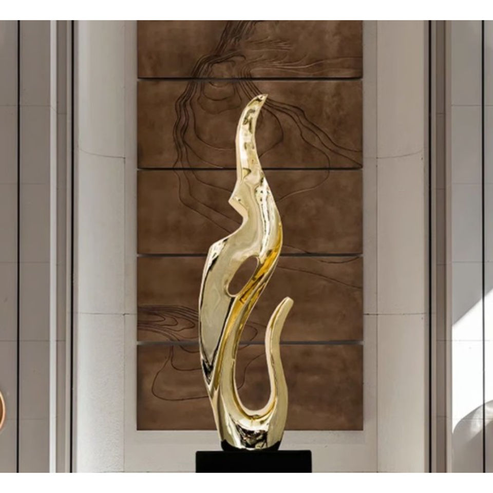 Escultura de decoración de mesa de lujo para sala de estar y oficina, adorno geométrico elegante para el hogar, Escultura Moderna de diseño de remolino de Metal dorado