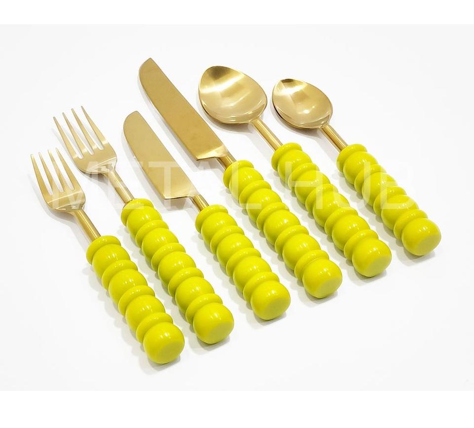 Shiny Gold Flatware Set With Lime Green Bubble Handle