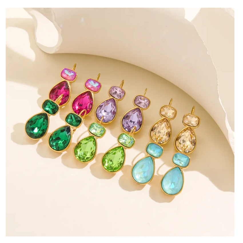 Temperamento de lujo 18K oro Acero inoxidable colorido Irregular Rhinestone exquisitos pendientes para mujeres estilo Vintage para regalo