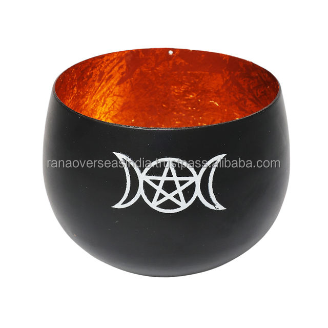 Soporte de luz de té de Metal con patrón de Pentáculo de Luna Triple de lujo, portavelas votivo al por mayor, tono dual para decoraciones navideñas