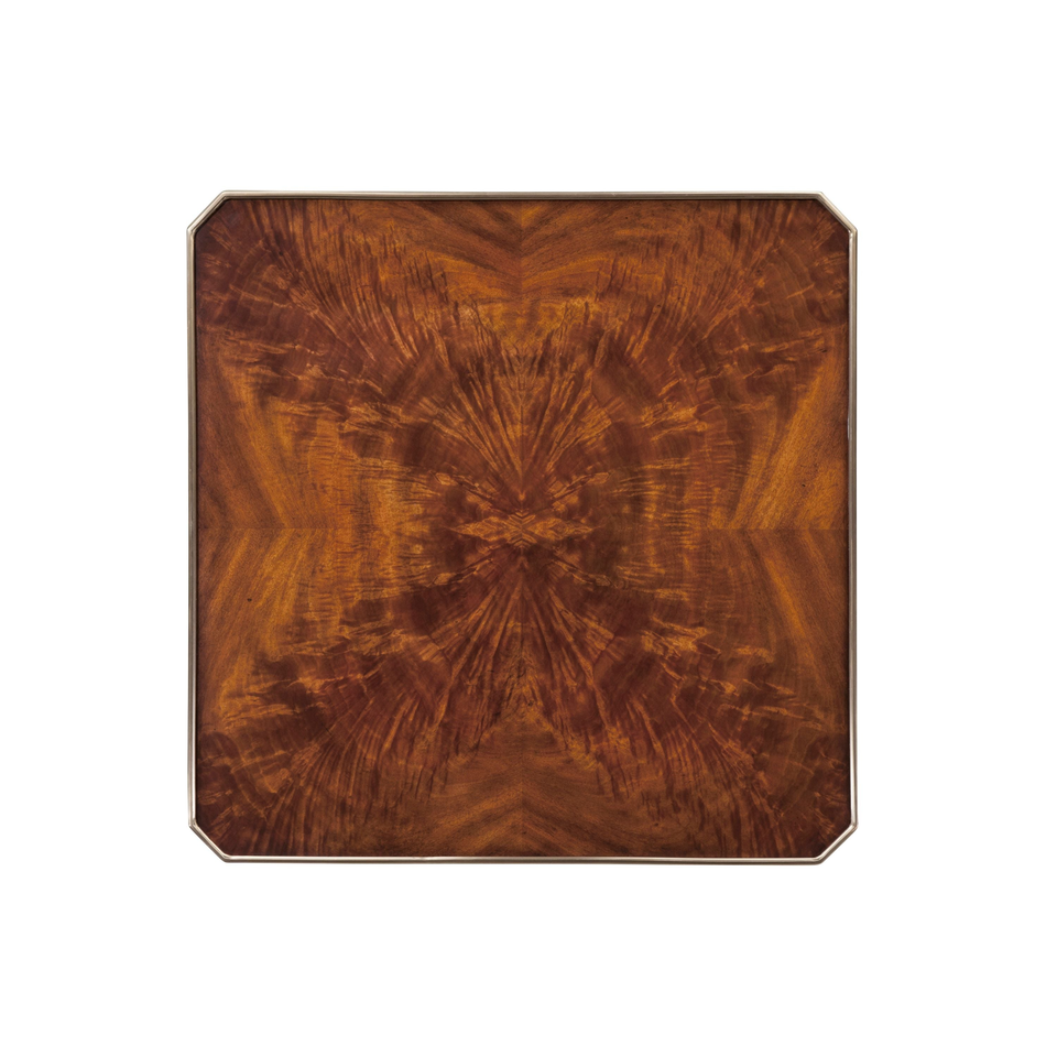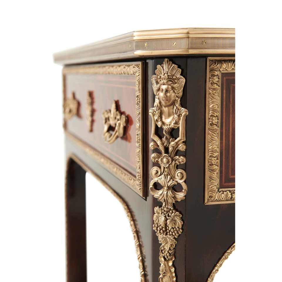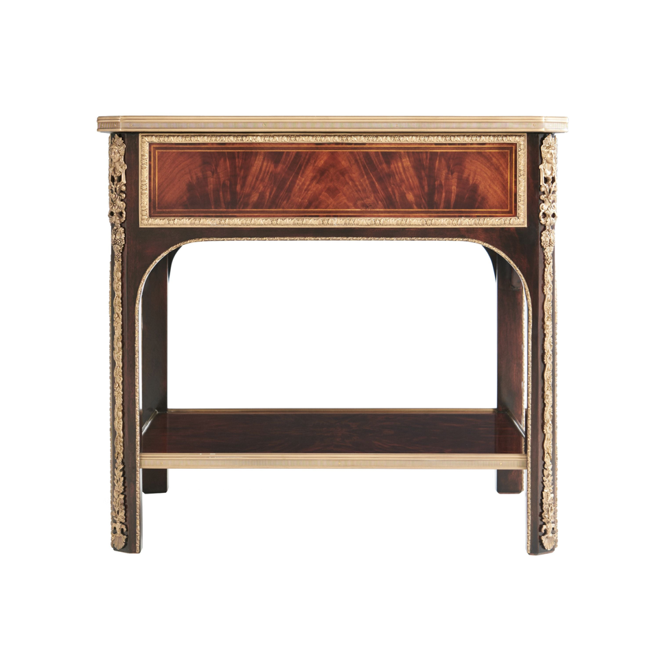 Mesa Auxiliar de Lujo con Dos Cajones, Detalles en Latón, Cubierta de Madera de Nogal Enriquecida y Estante de Exhibición