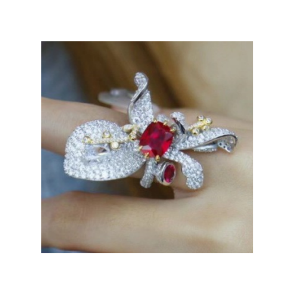 LAVINA SR28013RC anillos de cóctel de plata 925 hechos a mano de lujo para mujer diseño único Pave Cubic Zirconia simular corte radiante