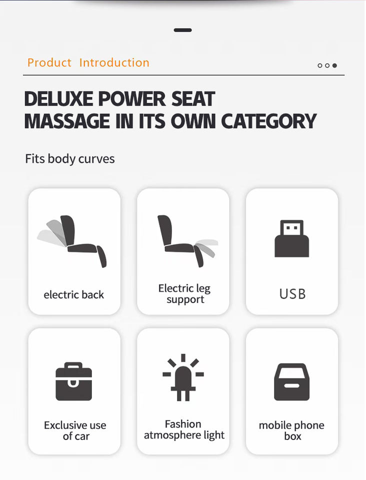 Característica:Respaldo eléctrico, soporte para piernas, ajuste lumbar neumático