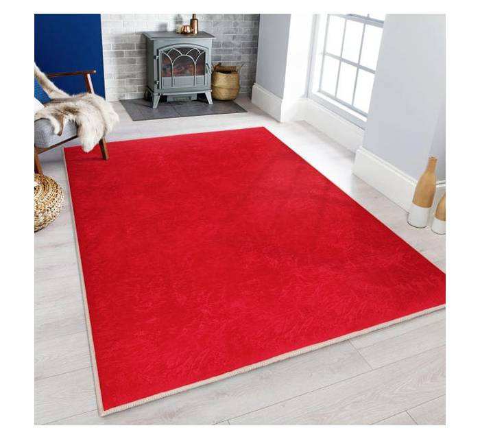 Alfombra de Lujo Roja Vibrante, Moderna, de Color Sólido, para Sala de Estar, Alfombra Suave Antideslizante, Lavable, Decorativa para Dormitorio