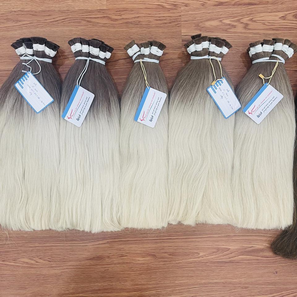 Extensiones de Cabello Humano Remy Vietnamita de Lujo, Cabello a Granel, Liso y Sedoso, Suave y Brillante, Color Decolorado, Sin Caída