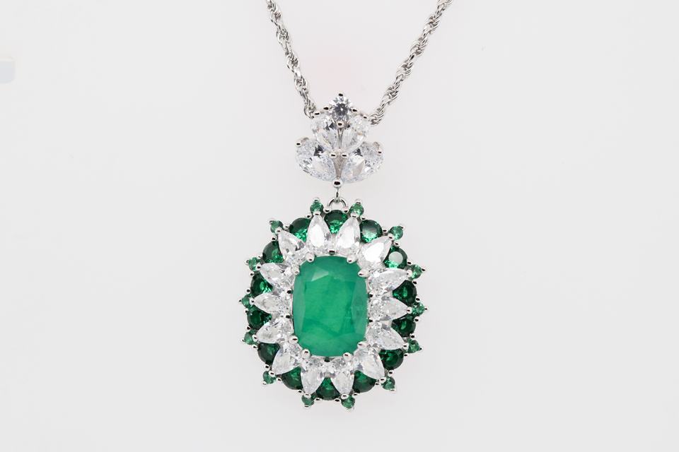 Collar de Mujer de Plata de Ley 925 Vintage de Lujo, Chapado en Rodio y Oro con Gema de Esmeralda Sintética y Circonita Cúbica para Boda o Fiesta