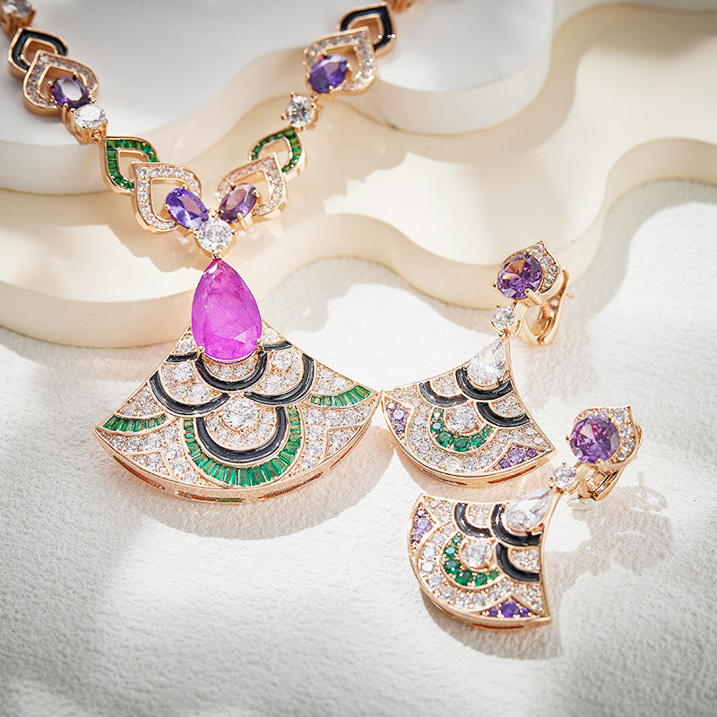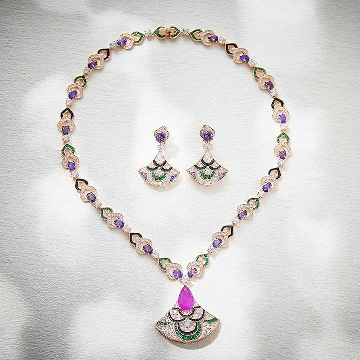 Nombre del producto:Conjunto de joyería de boda con collar y colgante de abanico pavimentado completo de circonita de lujo