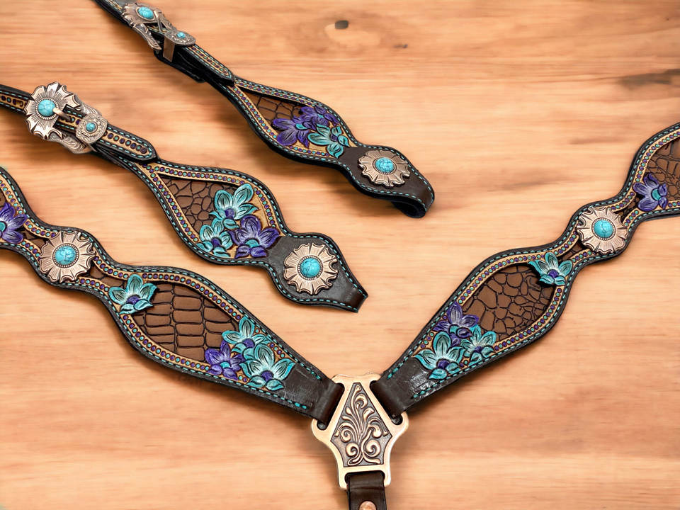 Juego de Cabezada y Pechera de Lujo Estilo Occidental, Diseños de Arneses de Primera Calidad, Juego de Arneses de Lujo para Caballo, Juego Completo para Caballo de Trabajo