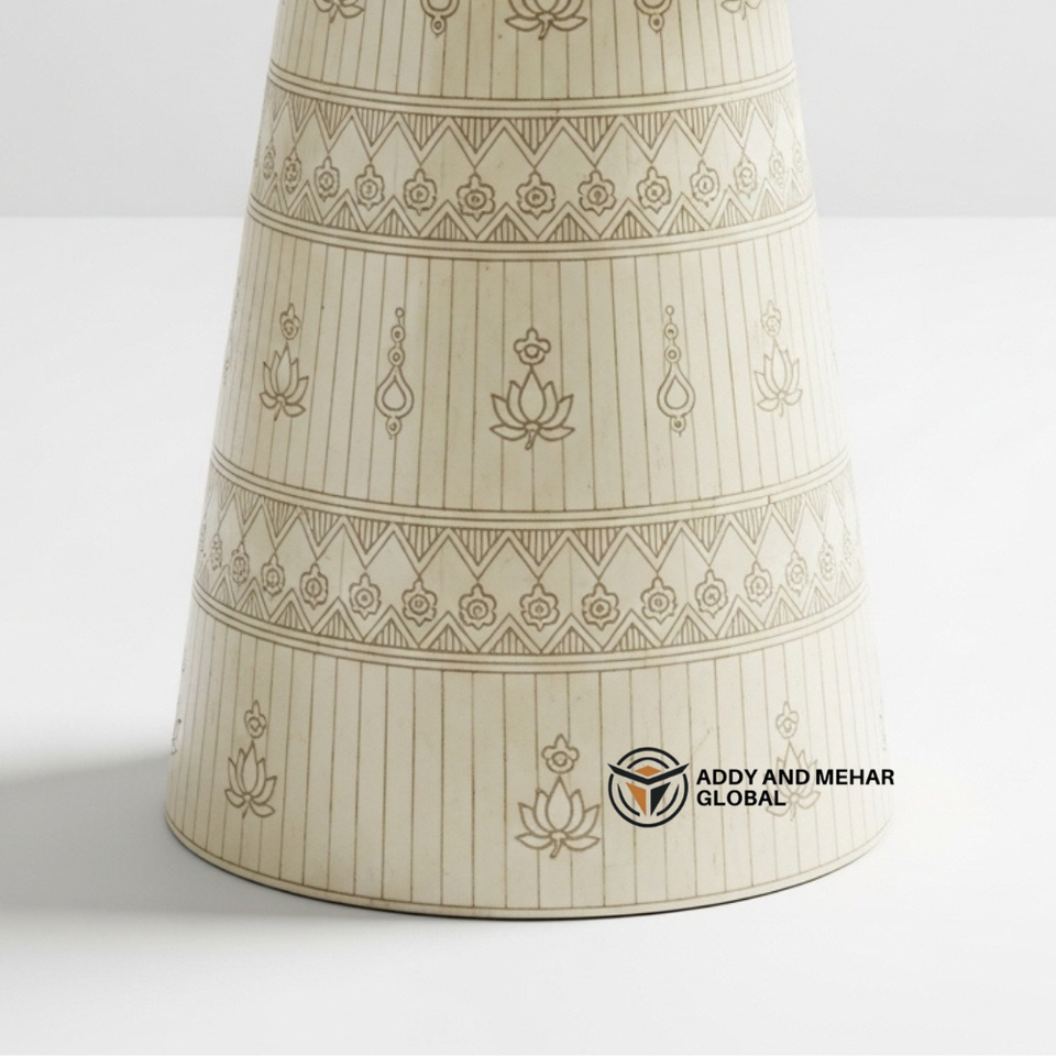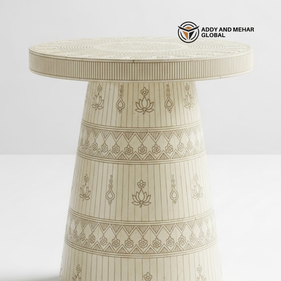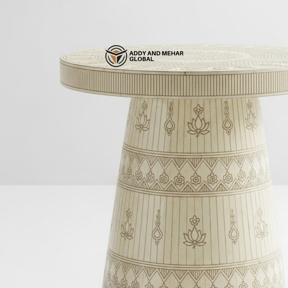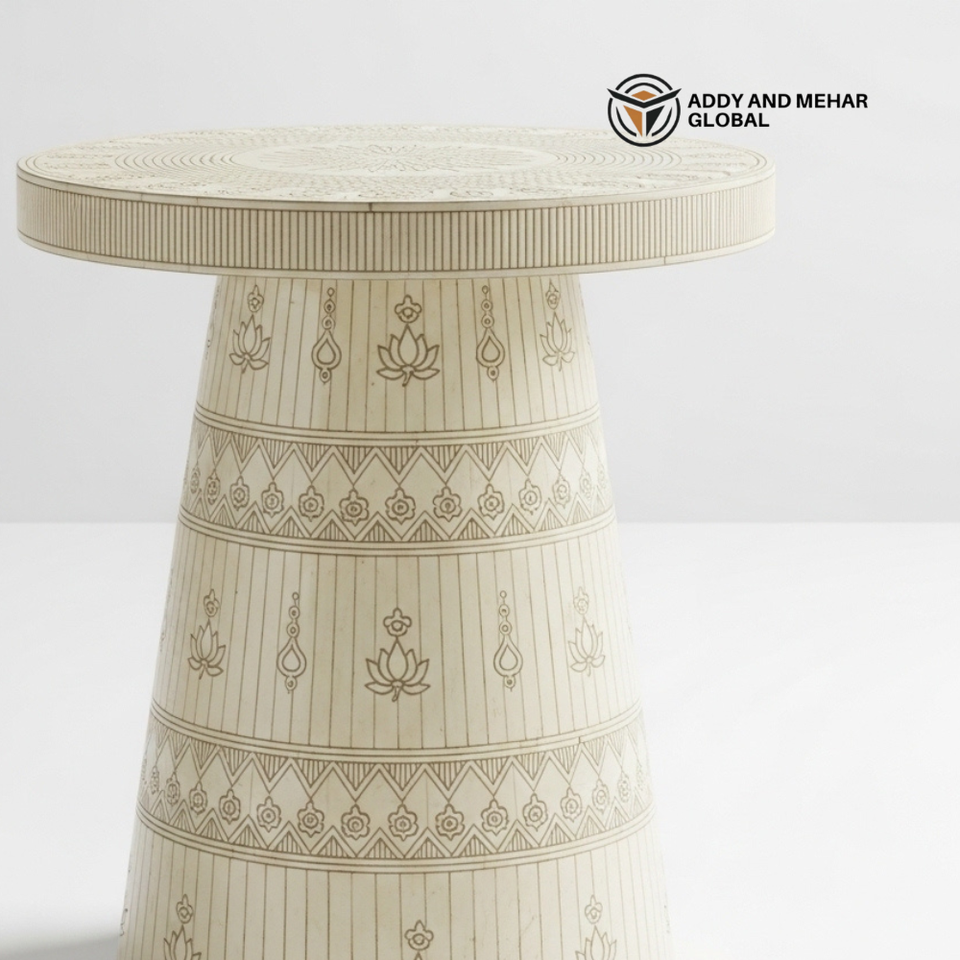 Mesa Auxiliar de Lujo con Incrustaciones de Hueso Blanco – Mesa Decorativa de Diseño con Patrón Floral Tradicional para Sala de Estar