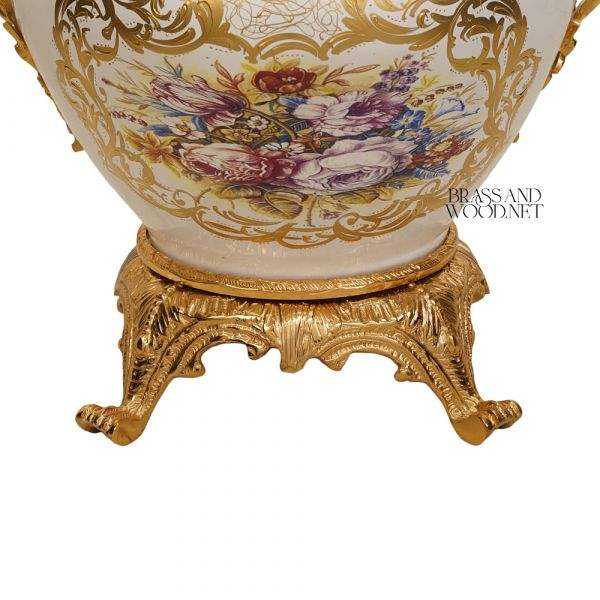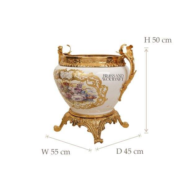 Maceta de Cerámica Blanca de Lujo con Decoración de Latón Chapado en Oro