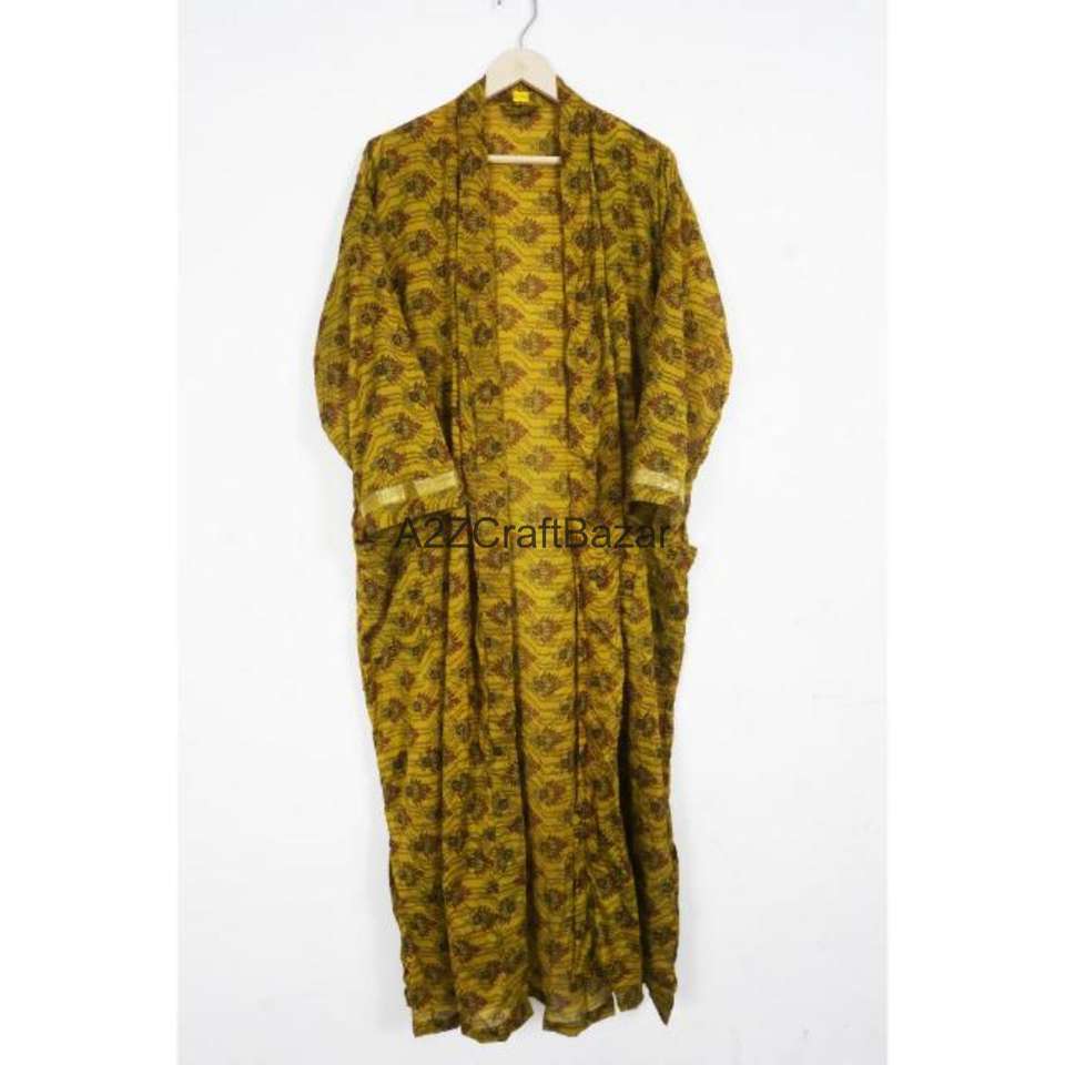 Bata Kimono de Lujo para Invierno/Verano con Estampado de Retazos, Cuello en V, Cierre con Cordón, de Seda, Tipo Abrigo para Casa o Bata de Baño