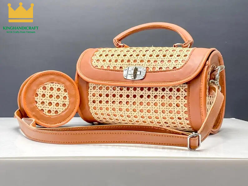 Bolso de mano de caña de mimbre de hombro de lujo para mujer, bolso de verano con asas de cuero