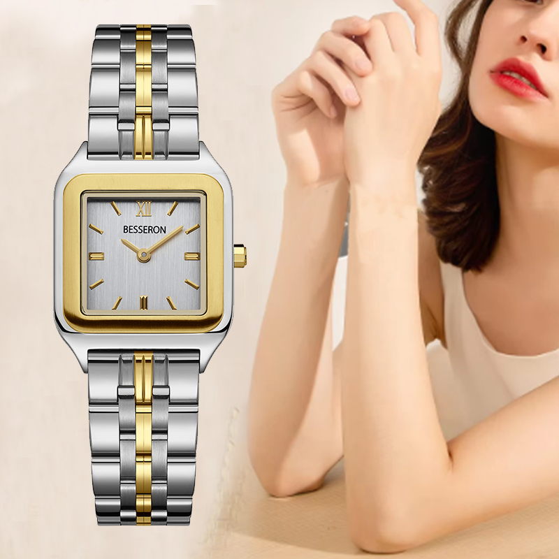 Reloj de cuarzo de acero inoxidable de lujo para mujer Reloj de pulsera informal de moda con logotipo personalizado dorado resistente al agua para damas Suministro ODM