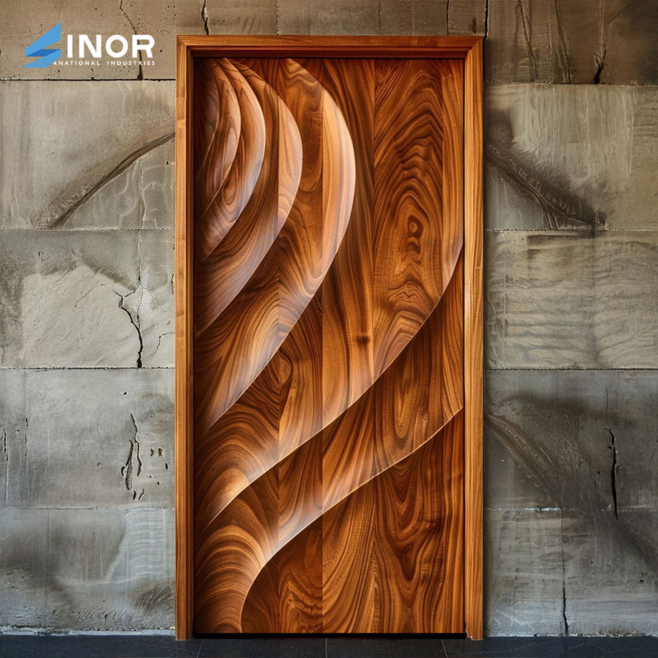 Puerta de Entrada de Madera de Lujo con Herrajes Chapados en Oro y Diseño Insonorizado para Proyectos Residenciales de Alta Gama
