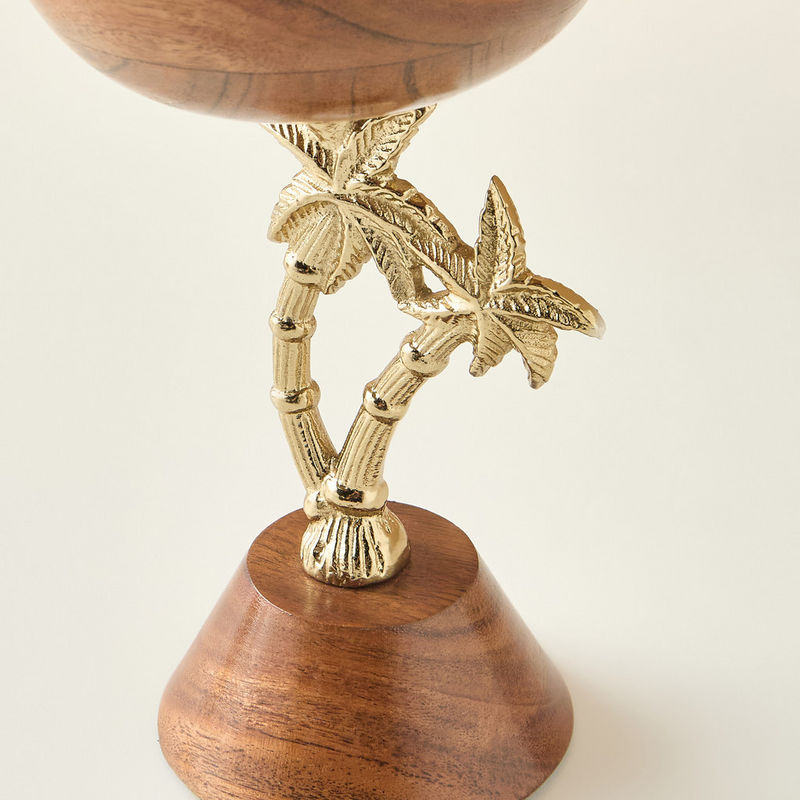 Quemador de Incienso Bakhoor de Madera y Metal de Lujo con Base de Palmera Dorada, Elegante Quemador de Incienso Árabe Oud Premium para el Hogar de Oriente Medio