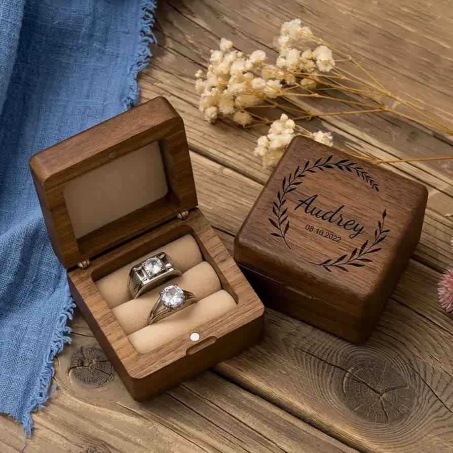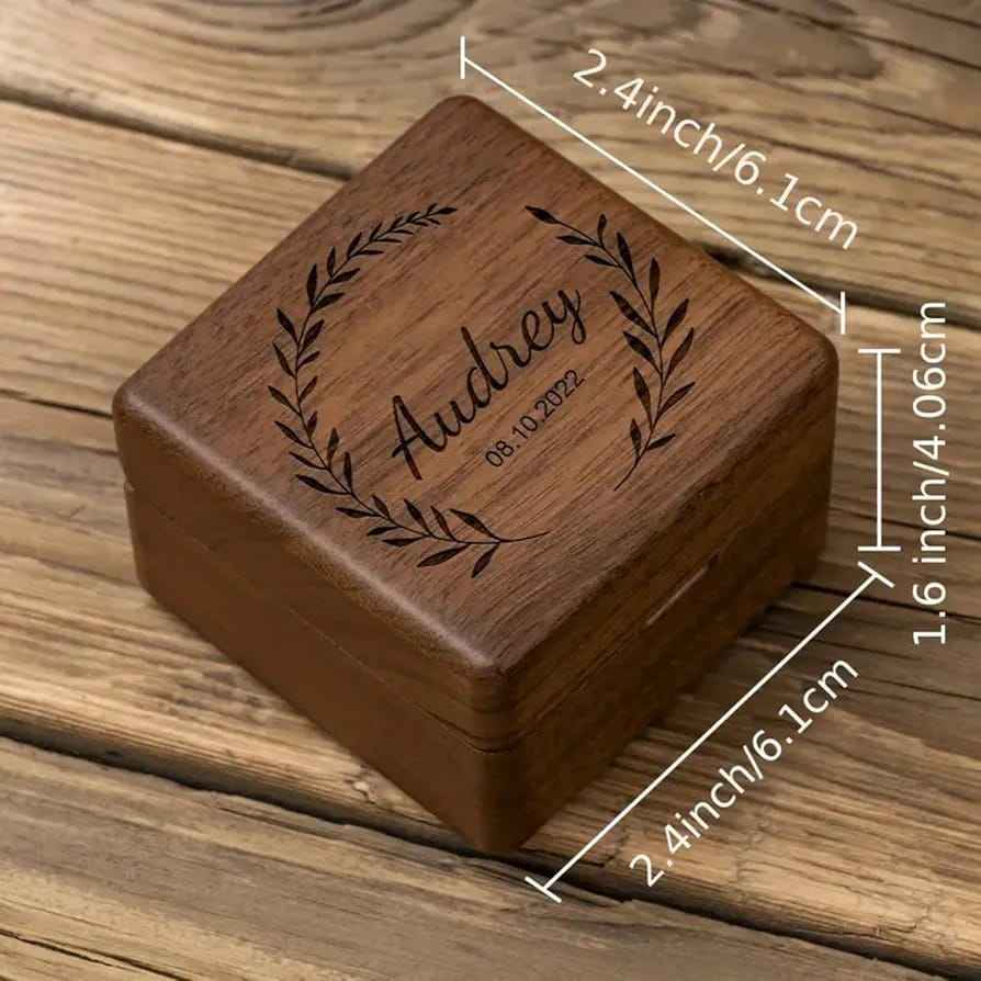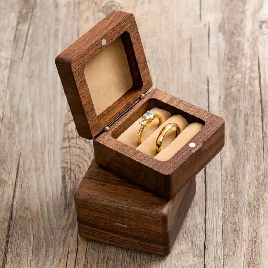 Caja de anillo de madera de lujo Caja de recuerdo de acabado pulido Caja de almacenamiento de anillo de madera rústica Caja de regalo ecológica