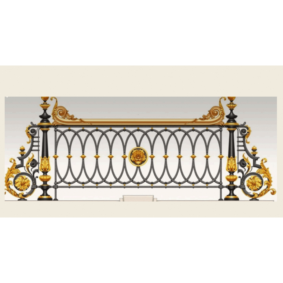 Barandilla de Balcón de Hierro Forjado de Lujo, Valla Metálica Decorativa Dorada, Diseño de Barandilla para Terraza de Villa al Aire Libre