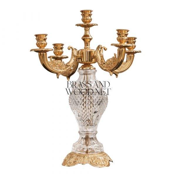 Portavelas de latón antiguo de lujo con detalles artísticos grabados para una decoración clásica del hogar y elegantes ocasiones festivas