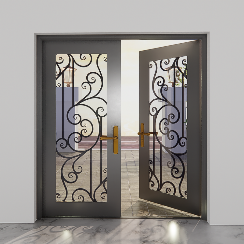 Puerta de hierro forjado de lujo con arco completo y volantes hechos a mano para fincas, hoteles y espacios arquitectónicos distinguidos
