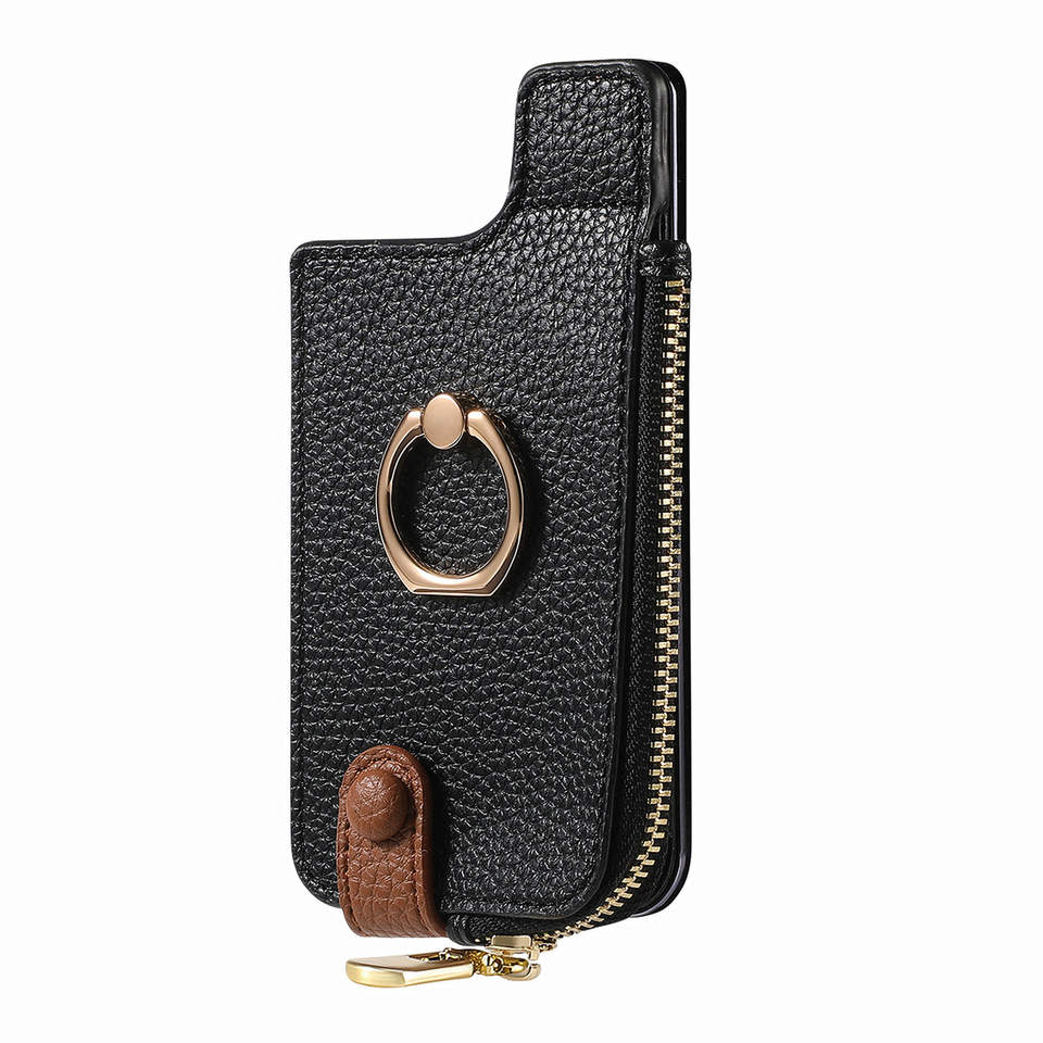 Funda Cartera con Cremallera y Diseño de Lichi para Samsung Serie A, Funda de Cuero PU para Galaxy S23 S24 Plus Ultra con Anillo