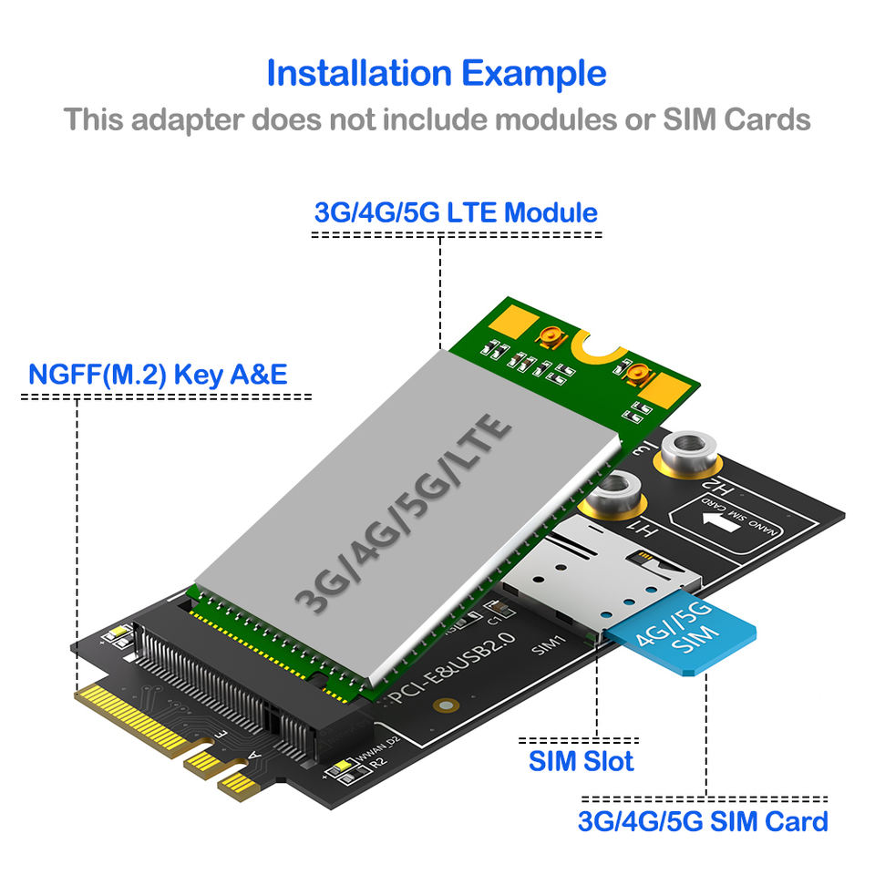 Adaptador M.2 A/E Key a NGFF B Key con Ranura Nano SIM para Módulos 3G/4G/5G LTE, Expansión Inalámbrica para Portátiles/Escritorios, Sin Pérdida de Velocidad, En Stock