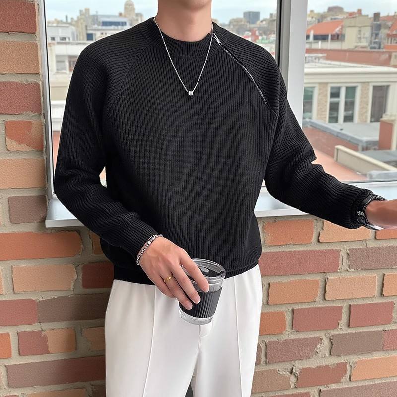 Top de invierno a la moda para hombre, suéter informal de cuello redondo de gama alta, suéter de Color sólido con cremallera, diseño ligero
