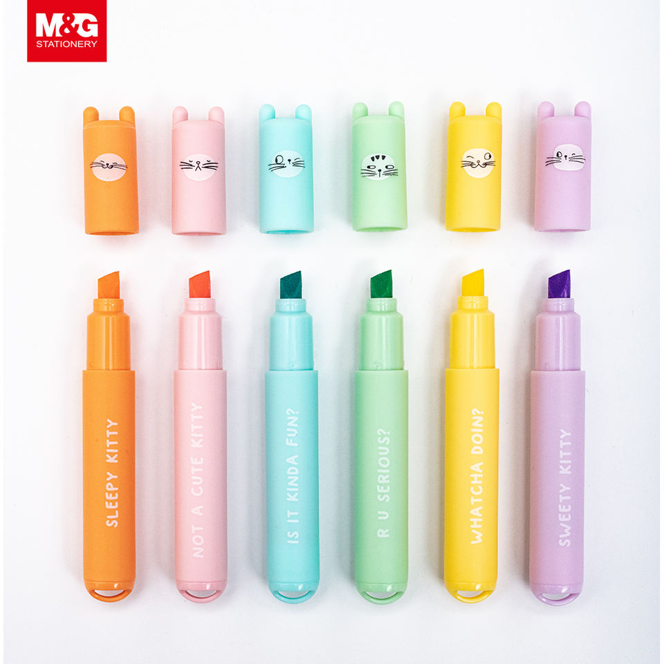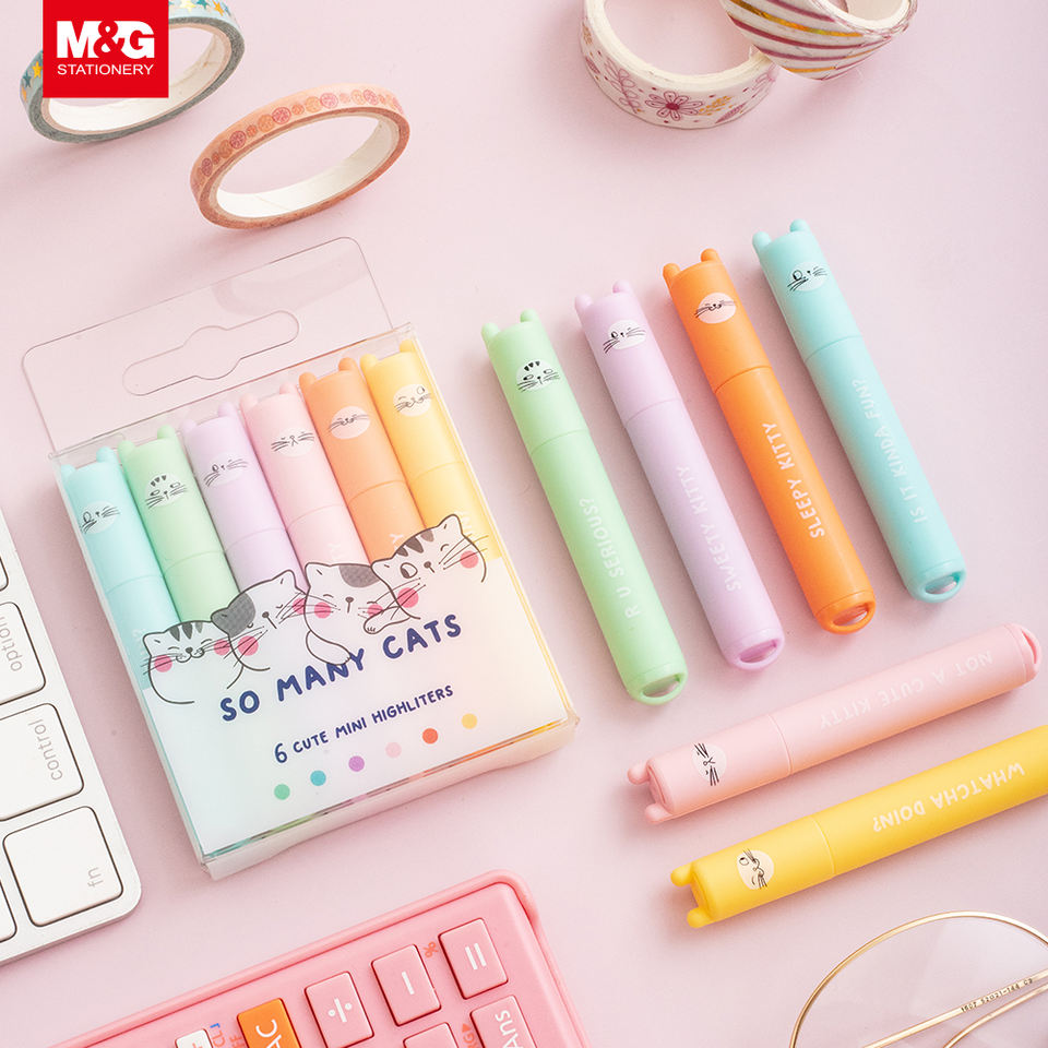 Marcadores Fluorescentes Mini Pastel Únicos y Lindos de M&G con Diseño Kawaii, Material Escolar para Estudiantes y Niños, Marcador Fluorescente Personalizado