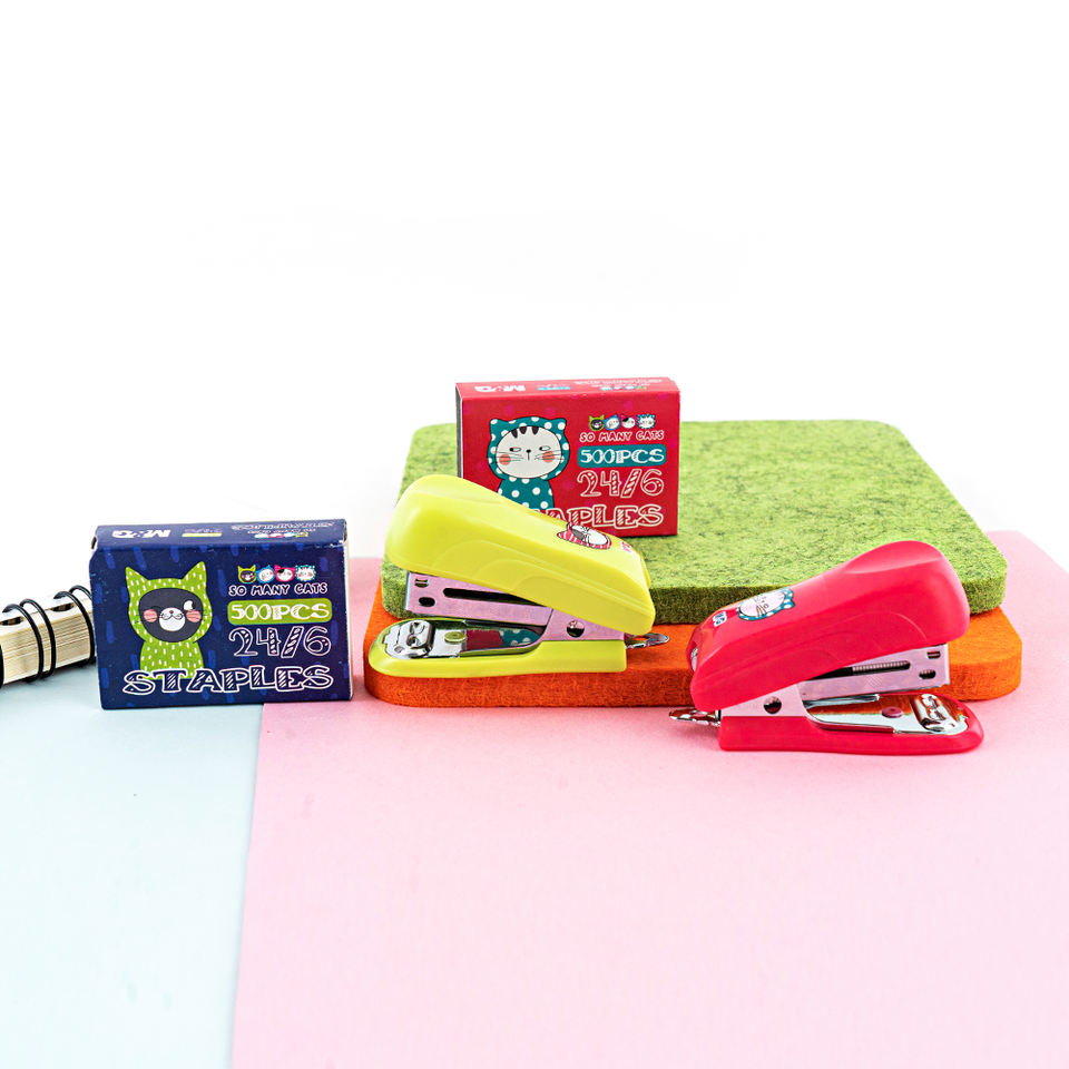 Mini Engrapadora Kawaii M&G 24/6 Mini, 4 Colores Vivos, Material Escolar para Estudiantes, Engrapadora Elegante y Duradera