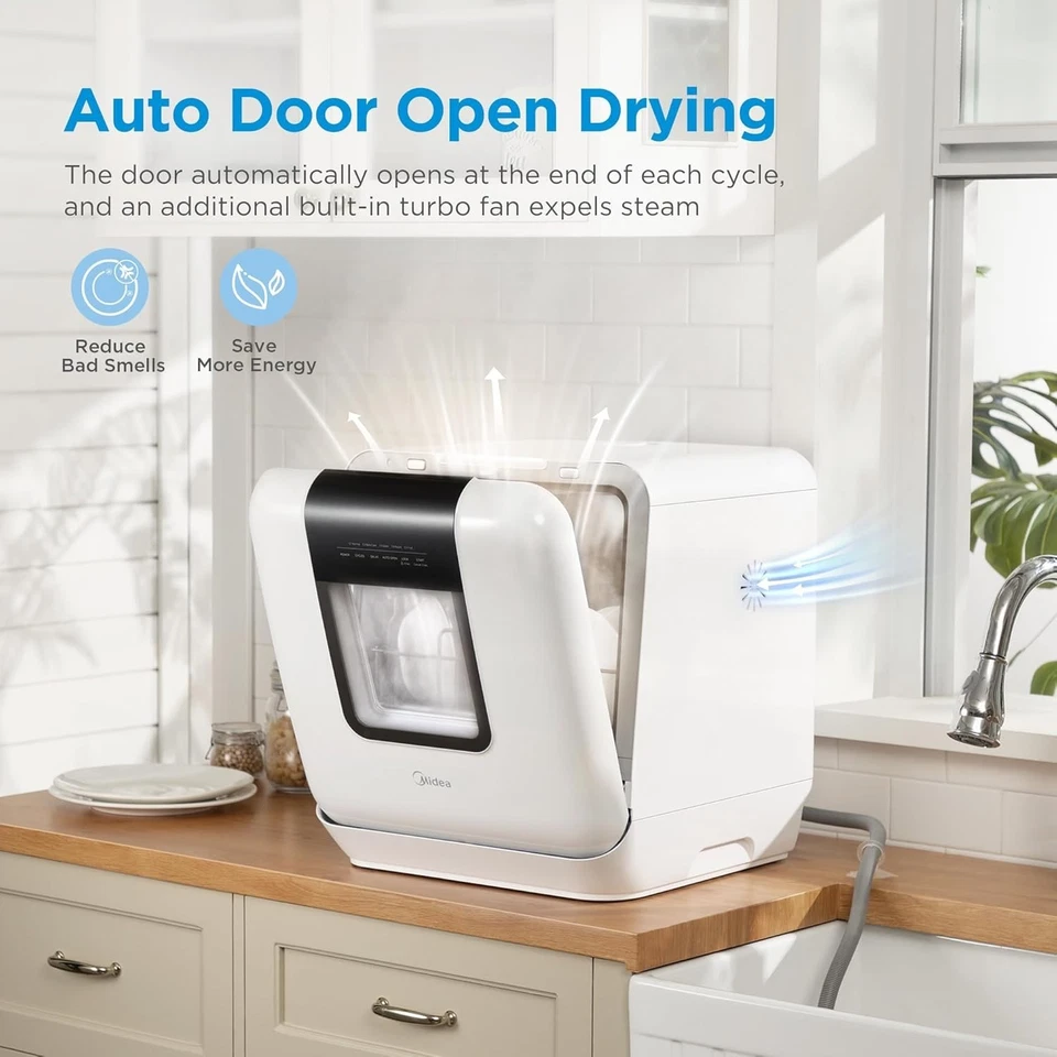Lavavajillas de Sobremesa Portátil Midea M-D-C-17P2D-W-W con Capacidad para 6 Platos y Tanque de Agua de 5 L