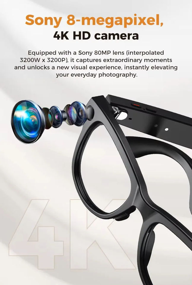 Gafas Inteligentes M02 con IA, Cámara de 8MP, Fotos, Video, Traducción por IA, ChatGPT, Llamadas por Bluetooth, Música, Resistencia al Agua IPX-5, Carga Inversa
