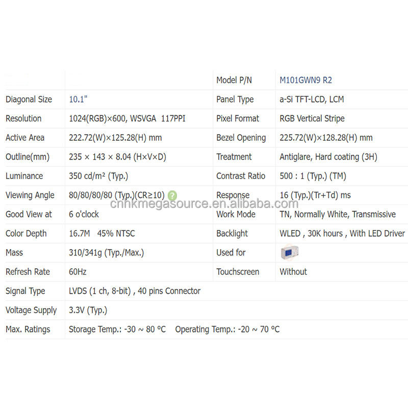 M101GWN9 R2 Size 10.1 inch 1024*600 LCD Display for Industrial LCD Module M101GWN9 R2