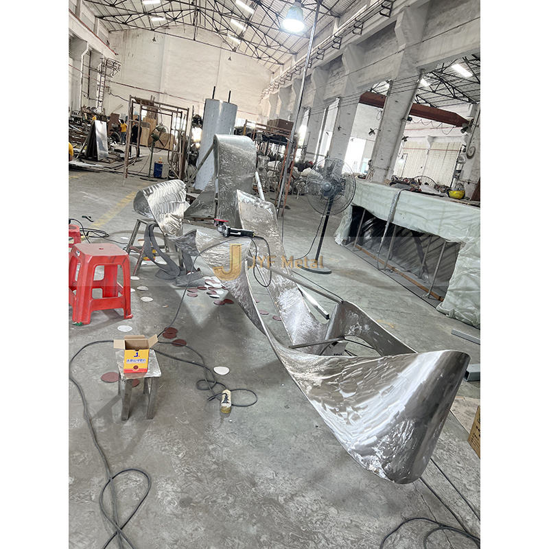Escultura de Onda de Diseño Art Deco en Acero Inoxidable M105, Resistente al Agua y Duradera, para Decoración de Playas y Parques con Soporte de Suelo
