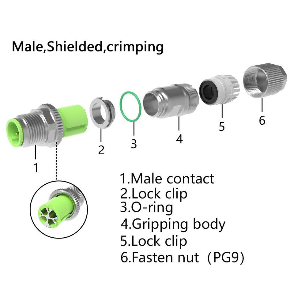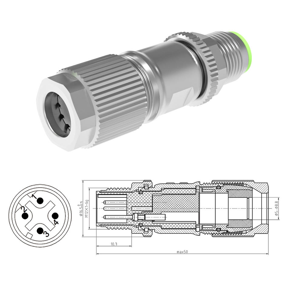 Nombre del elemento:Enchufe masculino del metal del código del Pin D de M12 4