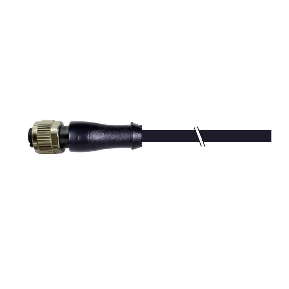M12 A Código Hembra Recto 4 Pin con 4x0,34mm sqmm Cable negro sin blindaje de PVC