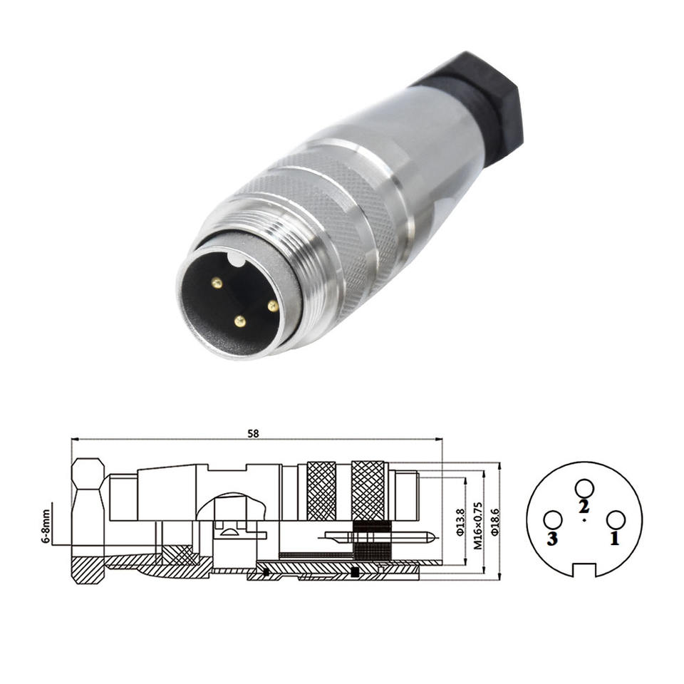 Conector recto macho M16 Instalación en campo blindado Conector circular de 3 pines a prueba de agua