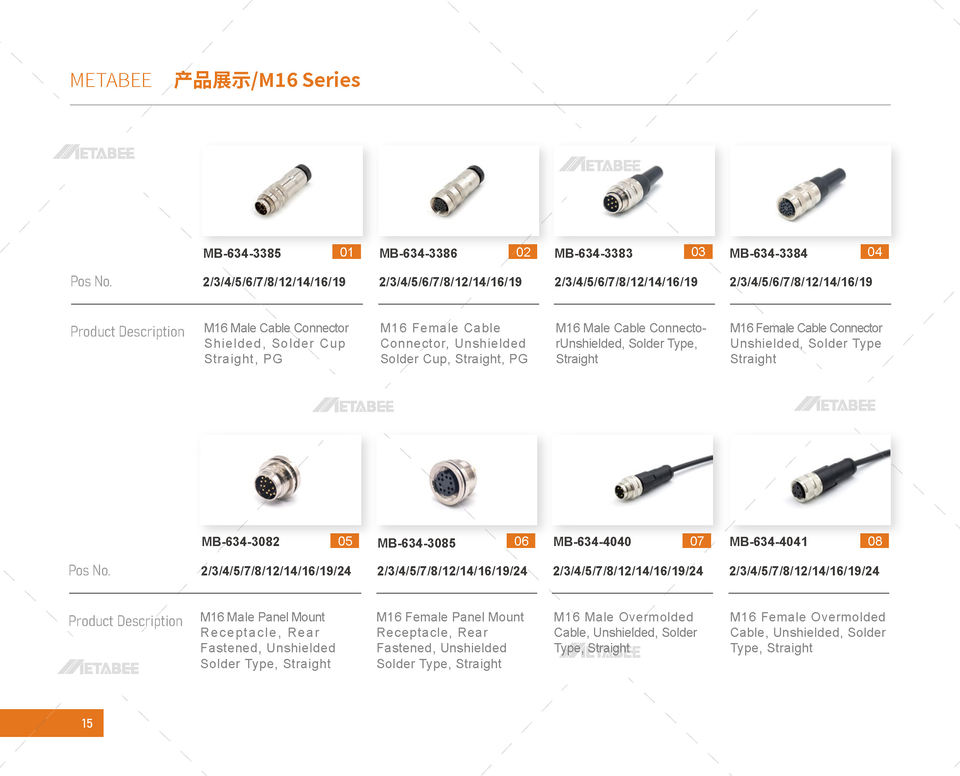 Cable conector impermeable M16 2 3 4 5 6 7 8 12 14 16 pines macho hembra aviación circular AISG C091 | METABEE B2B fábrica