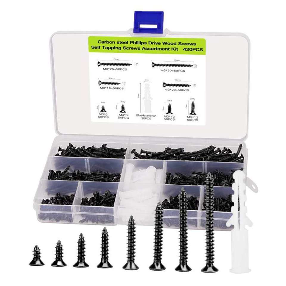 420 piezas de acero al carbono Phillips Drive Wood:Tornillo autorroscante de cabeza avellanada cruzada
