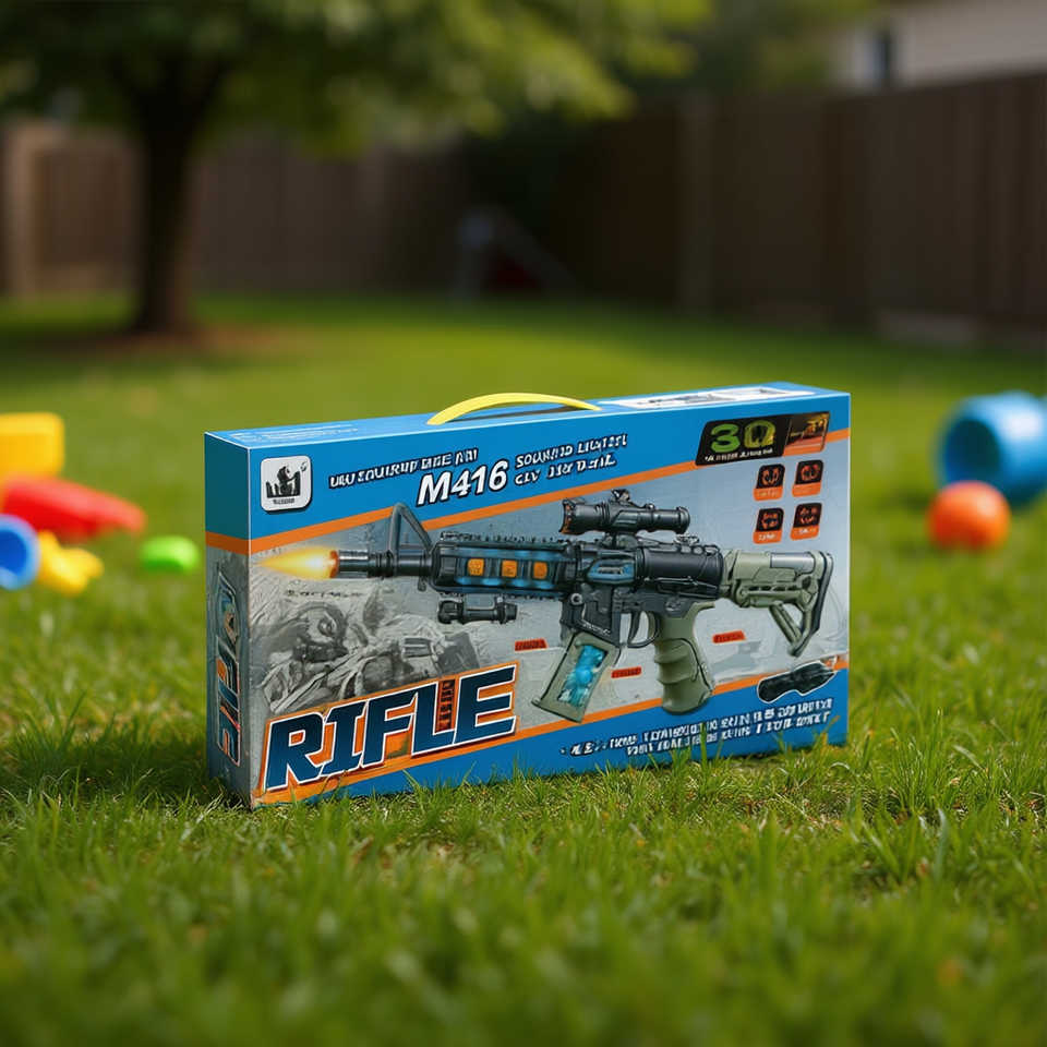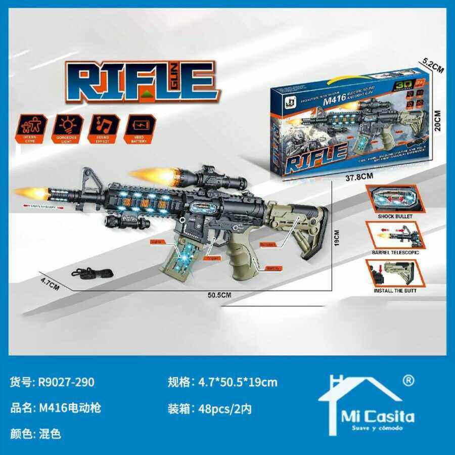 Rifle de Juguete Eléctrico M416 con Sonido y Luces para Niños de 8 a 13 Años, Material Plástico, Funciona con Batería