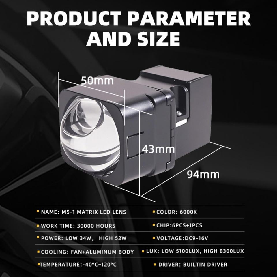 Lente de Proyector Bi-LED Matrix M5-1 de 1.5 Pulgadas para Todo Tipo de Coche, 8300lm, Luz de Haz Alto Directo, Módulo LED Matrix para Faros Delanteros