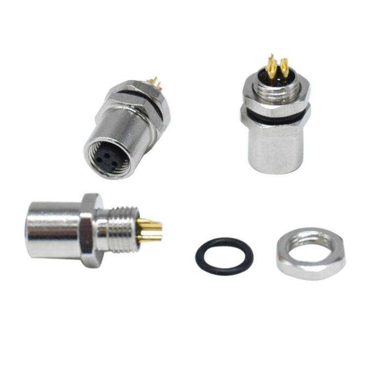 Receptáculo de montaje en panel M5 IP67, resistente al agua, 3 pines, enchufe hembra de soldadura con sujeción trasera para la industria eléctrica