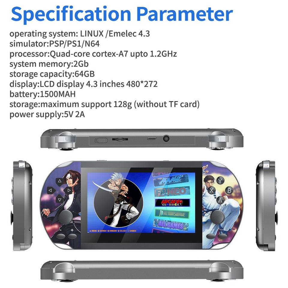 Consola Portátil Retro M7 con Pantalla HD de 4.3 Pulgadas, Sistema de Juego Inalámbrico Compatible con Juegos de PS1, Estilo E-Sports, Color Negro