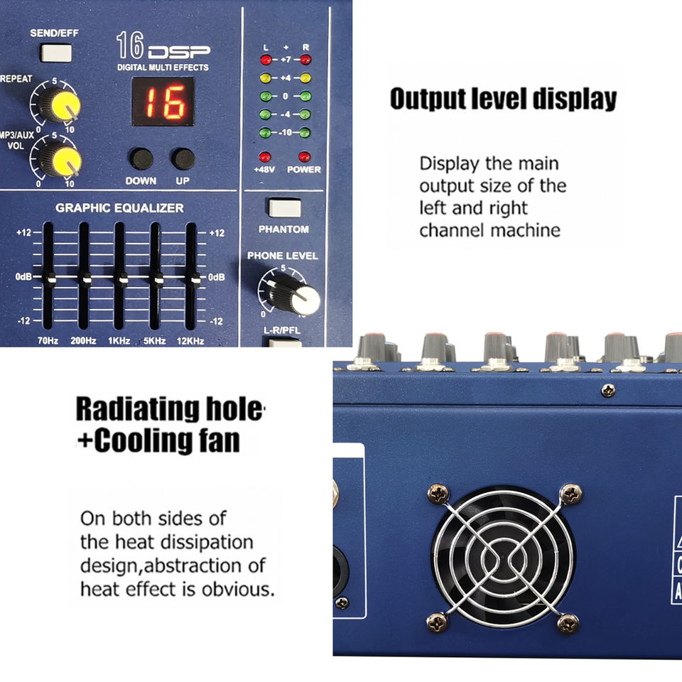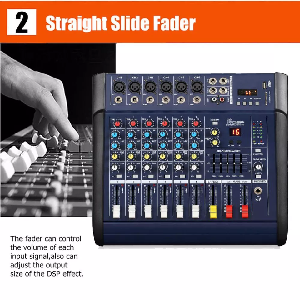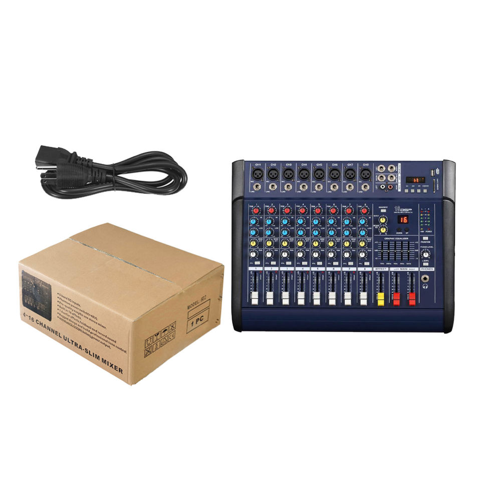 Consola de Mezclas de Audio Profesional M802D de 8 Canales con Amplificador de Potencia Integrado para Fiestas Sistema de Sonido de Alta Calidad
