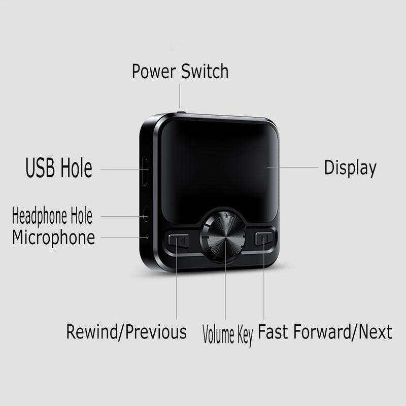 Reproductor MP3 M9 con Pantalla OLED de 1.2 Pulgadas, Carcasa de Aleación de Zinc, Clip Trasero, Bluetooth 4.2, Radio FM, Lector de Libros Electrónicos y Reproductor de Música
